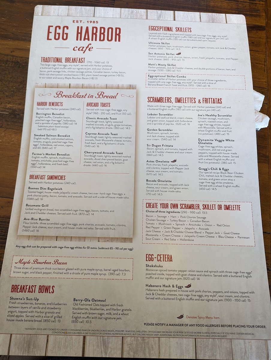 Exclusive to this location, the Down Home Biscuits & Gravy is a must-try, featuring savory pork sausage gravy served with two eggs and Harbor potatoes—perfect comfort food. For younger diners, a thoughtfully designed Kids Menu ensures no one is left out of the culinary adventure. Noteworthy reviews reflect exceptional service and a commitment to using local organic ingredients, making each visit memorable. Whether it’s a flavorful omelette or a rich iced latte, every dish at Egg Harbor Cafe offers a delightful experience that leaves you craving more.